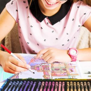 Obsahuje: 1 x kufrík, 64 x pasteliek, 20 x krátke farbičky, 40 x farebné umývateľné fixky, 15 x biely papier, 15 x omaľovánky