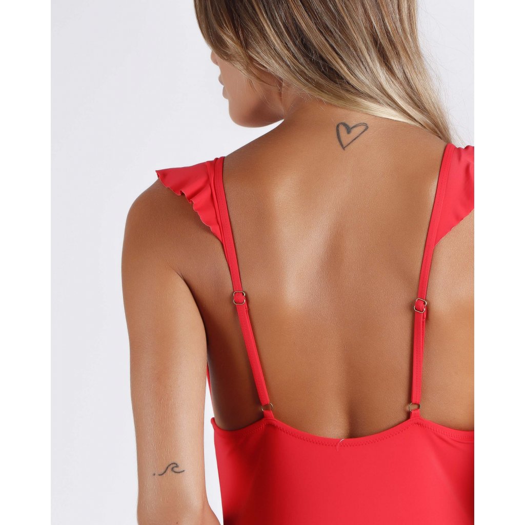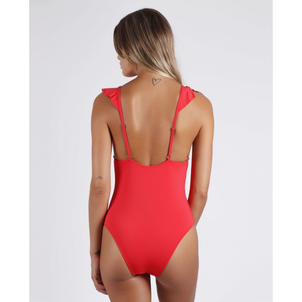 Dámske plavky Frill v červenej farbe. Plavky sú podšité. Možnosť vybrať vypchávky. Ramienka sú nastaviteľné podľa potreby.