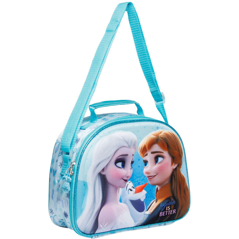 Praktická termo obedová taška s motívom Frozen v modrej farbe. Tašku je možné nosiť v ruke alebo na pleci pomocou popruhu ktorý je súčasťou balenia. Popruh je nastaviteľný podľa potreby. Dĺžka popruhu max. 120cm.