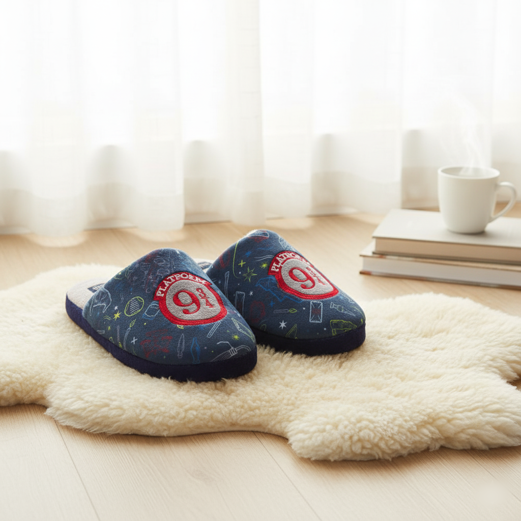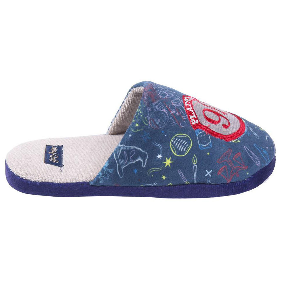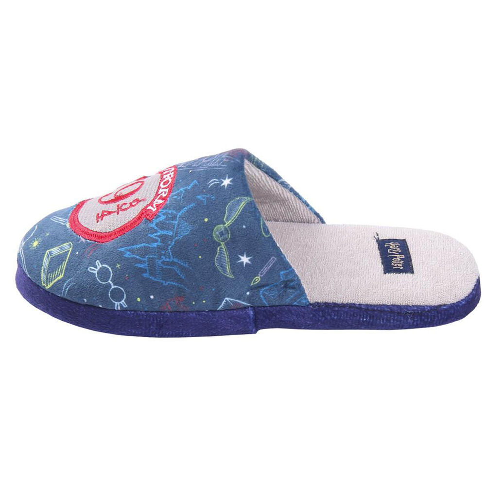 Teplé papuče v modrej farbe s motívom rozprávky Harry Potter. Papuče majú spevnenú spodnú časť.