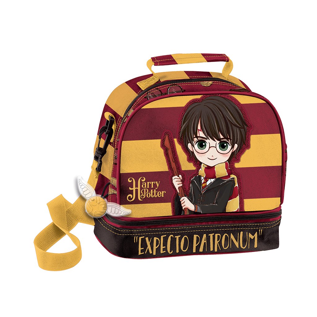 Praktická taška na obed s motívom Harry Potter. Tašku je možné nosiť v ruke alebo na pleci pomocou popruhu ktorý je nastaviteľný podľa potreby.