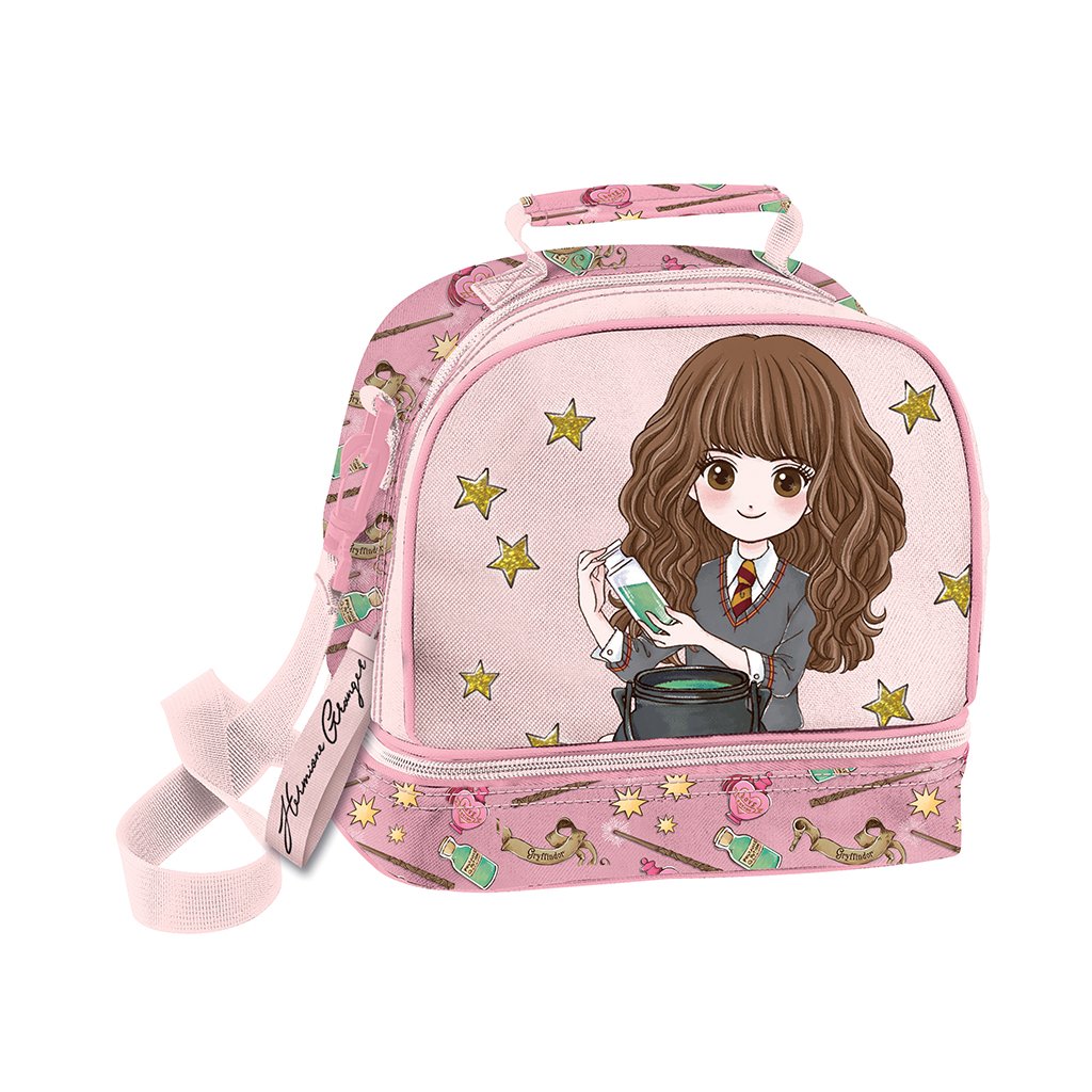 Praktická taška na obed Harry Potter s motívom Hermiona. Tašku je možné nosiť v ruke alebo na pleci pomocou popruhu ktorý je nastaviteľný podľa potreby.