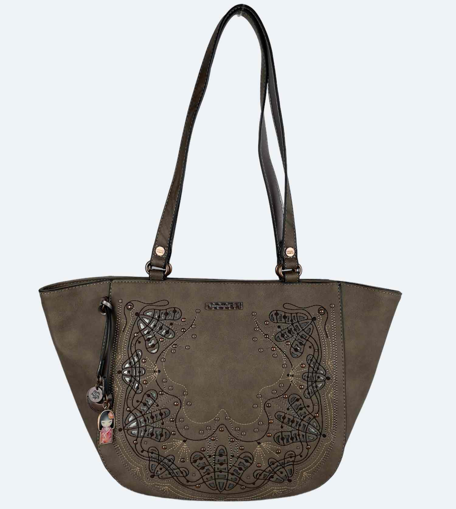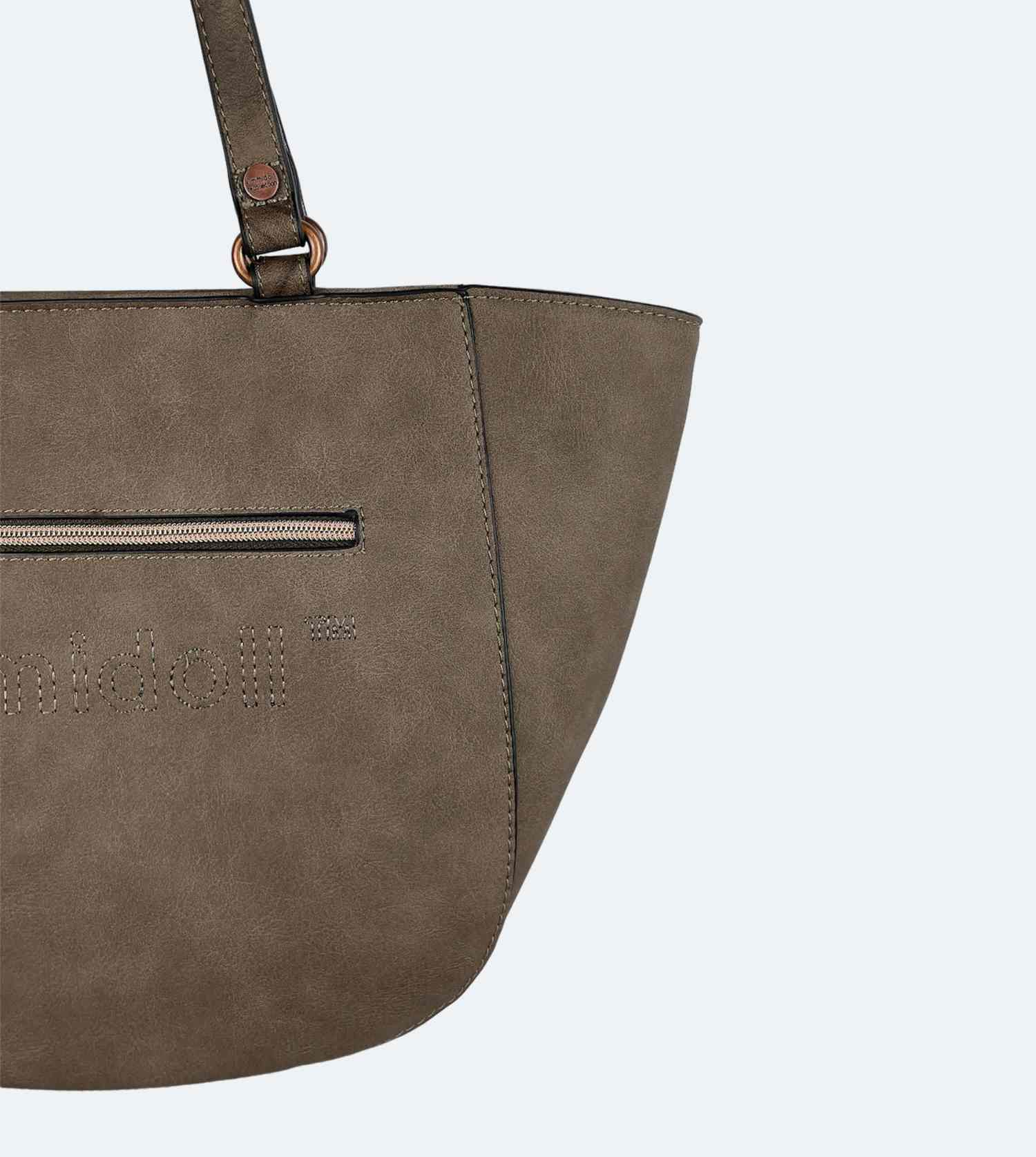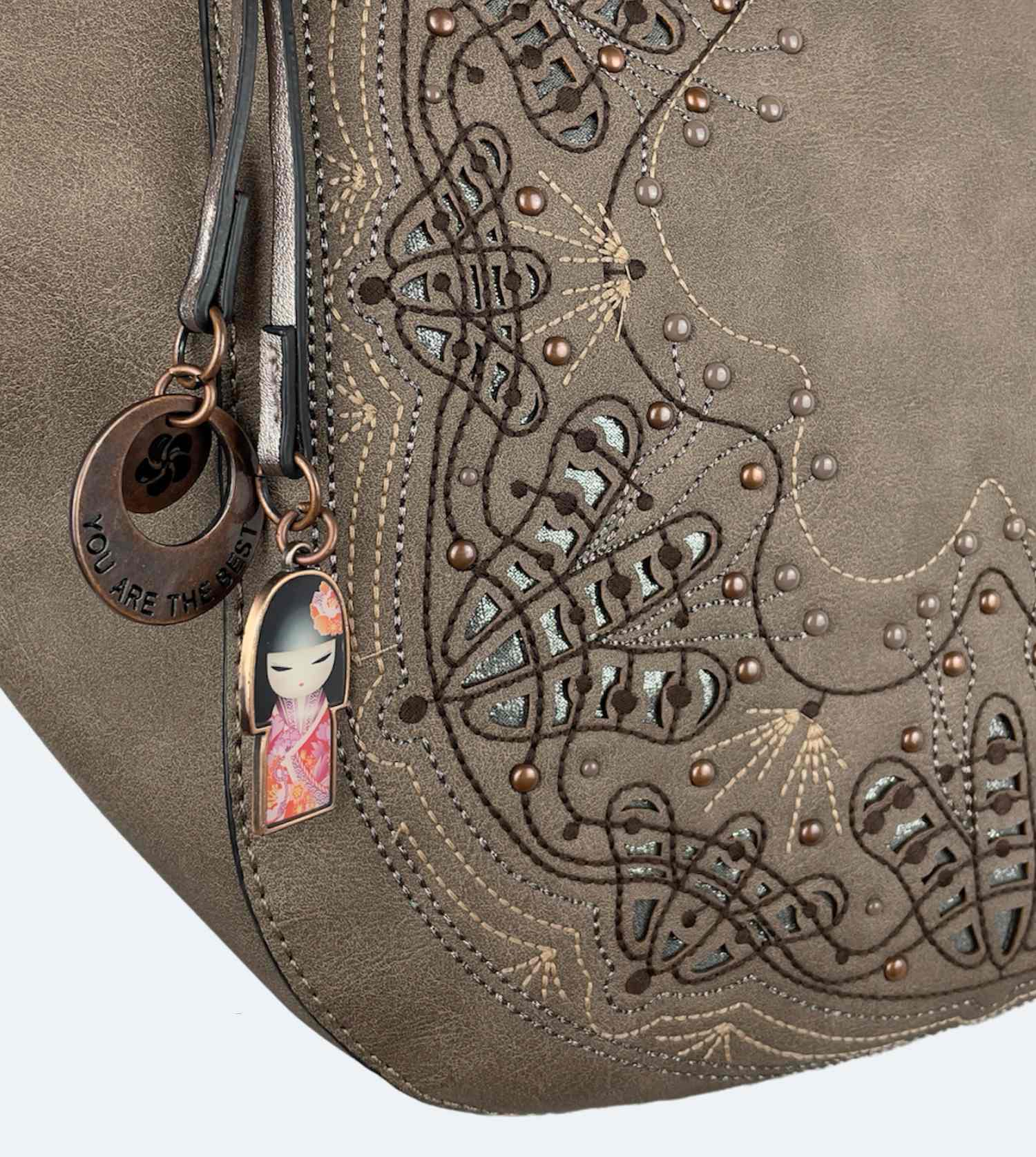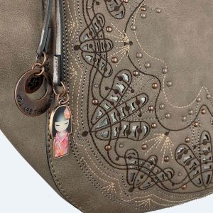 Praktická kabelka na plece značky Kimmidoll. Na zadnej vonkajšej strane je vrecko na zips. Vo vnútri je otvorené vrecko na mobil a kľúče, taktiež vrecko na zips na doklady. Kabelka má zapínanie na zips.