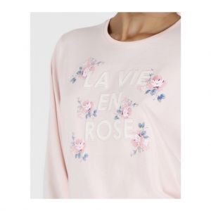 Dámske pyžamo s motívom La Vie En Rose v jemnej ružovej farbe a kvetinovom motíve. Balené v darčekovej krabici.