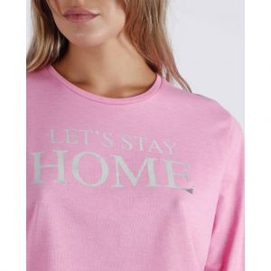 Dámske pyžamo Let's Stay Home z príjemného materiálu. Pyžamo je z tenšieho materiálu takže je ideálne aj na leto. Spodný diel má v páse elastickú gumičku so šnúrkou. Balené v darčekovej krabičke.