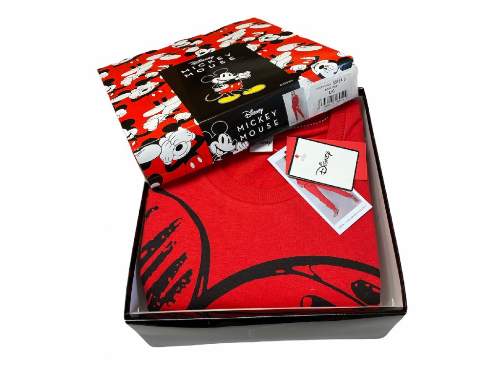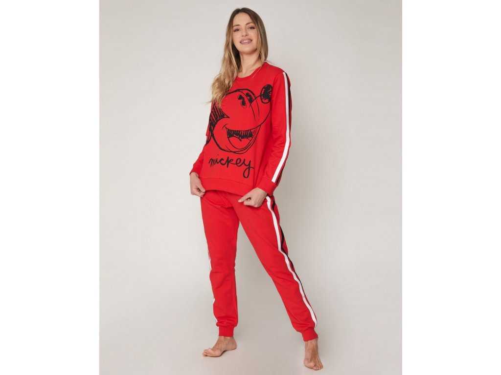 Pohodlne aj doma s domácim oblečením s motívom obľúbeného Mickey Mouse v červenej farbe.