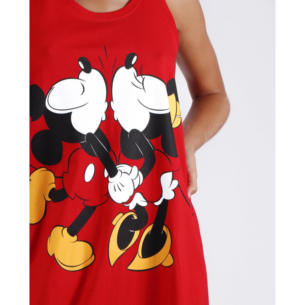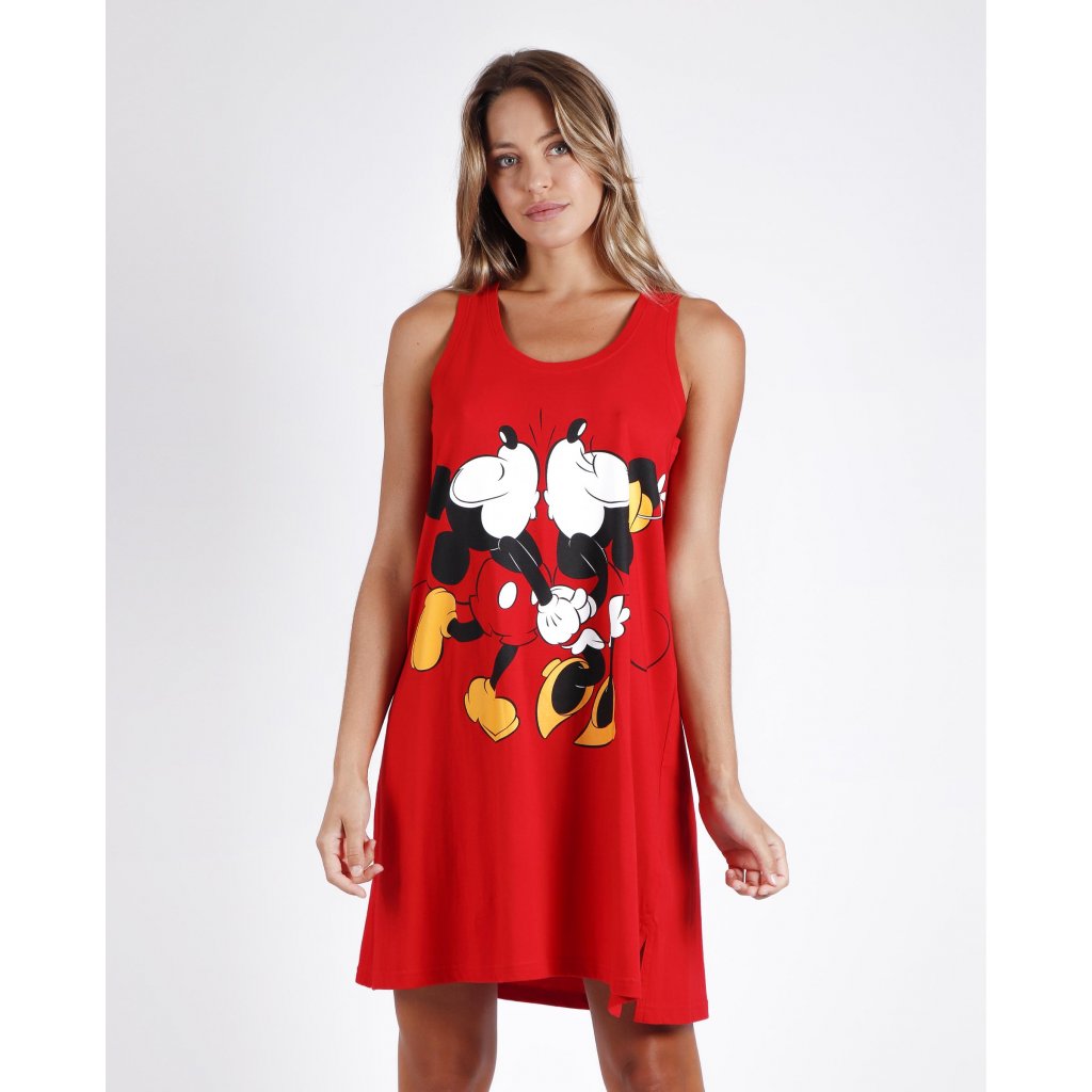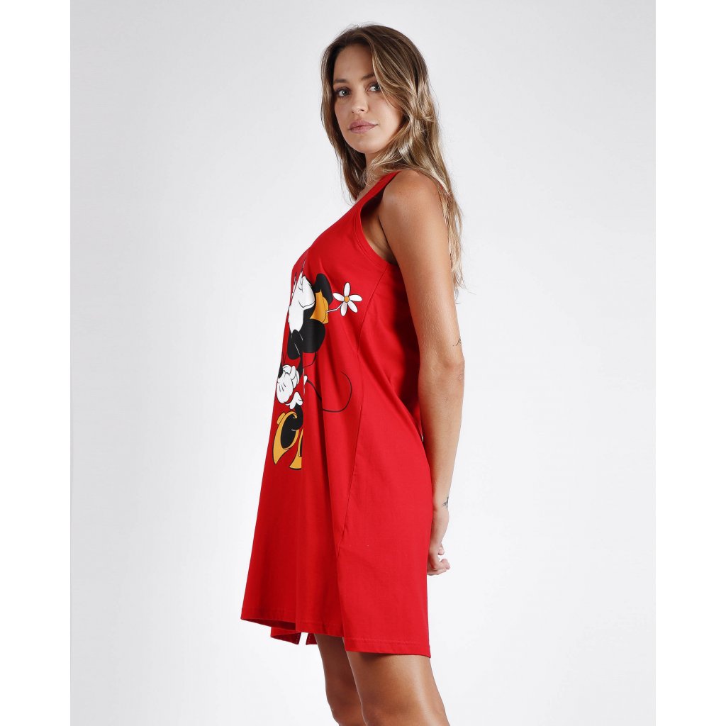 Dámska nočná košeľa v červenej farbe s motívom Minnie a Mickey Mouse. Košeľa je na ramienka a na prednej strane potlač s Minnie a Mickey Mouse.Balené v darčekovej krabici.