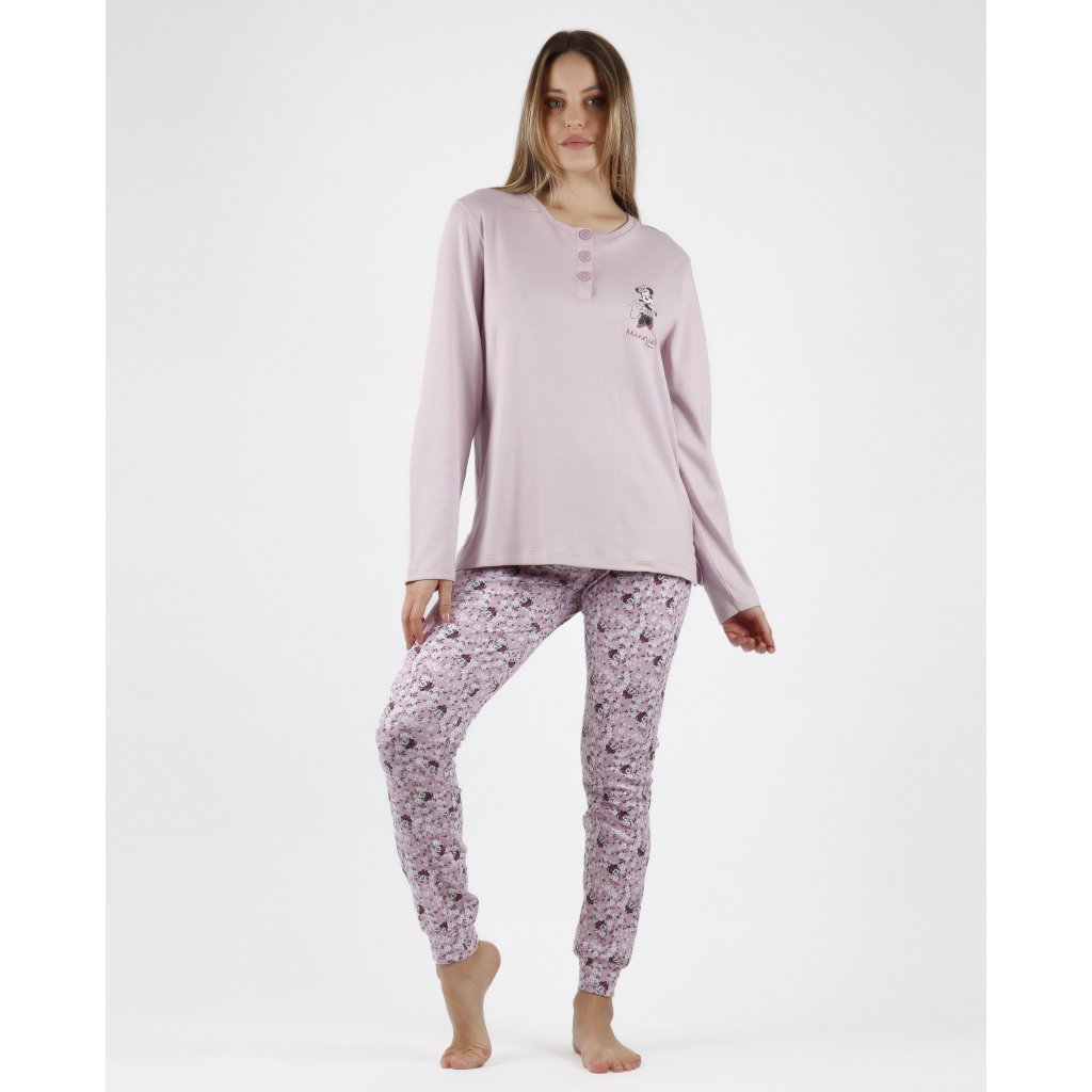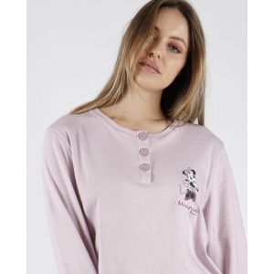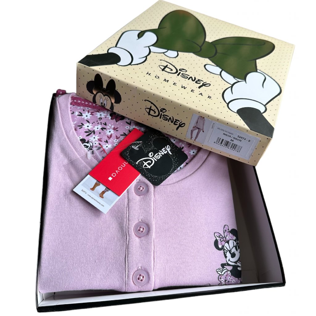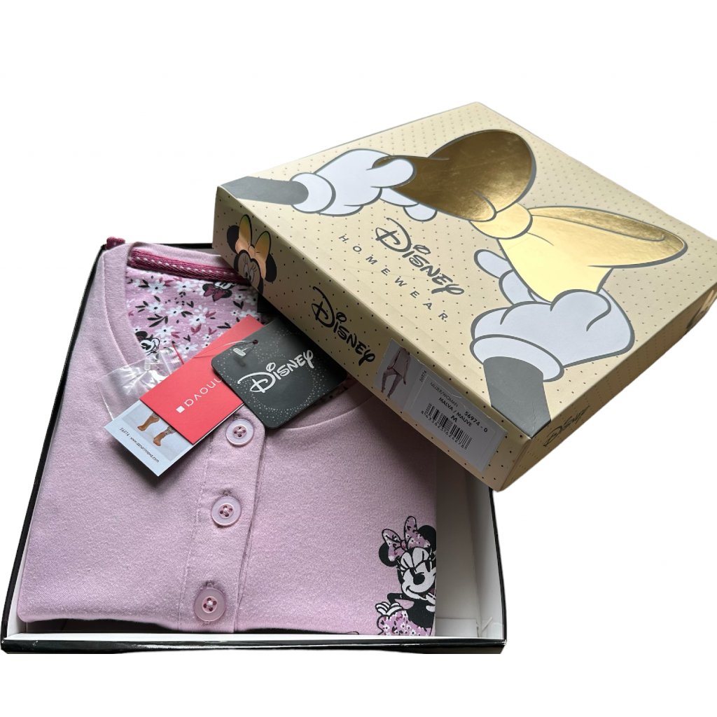 Dámske pyžamo s motívom Minnie Mouse. Patent na nohaviciach, v páse gumička so šnúrkou. Balené v darčekovej krabici.