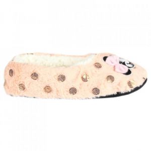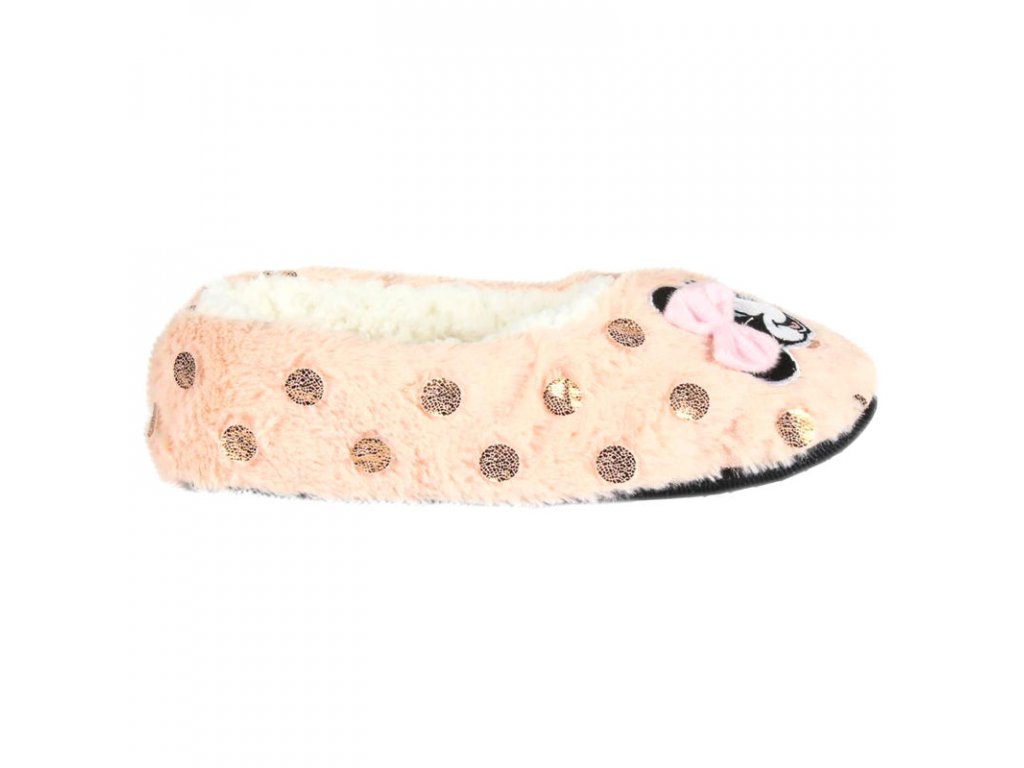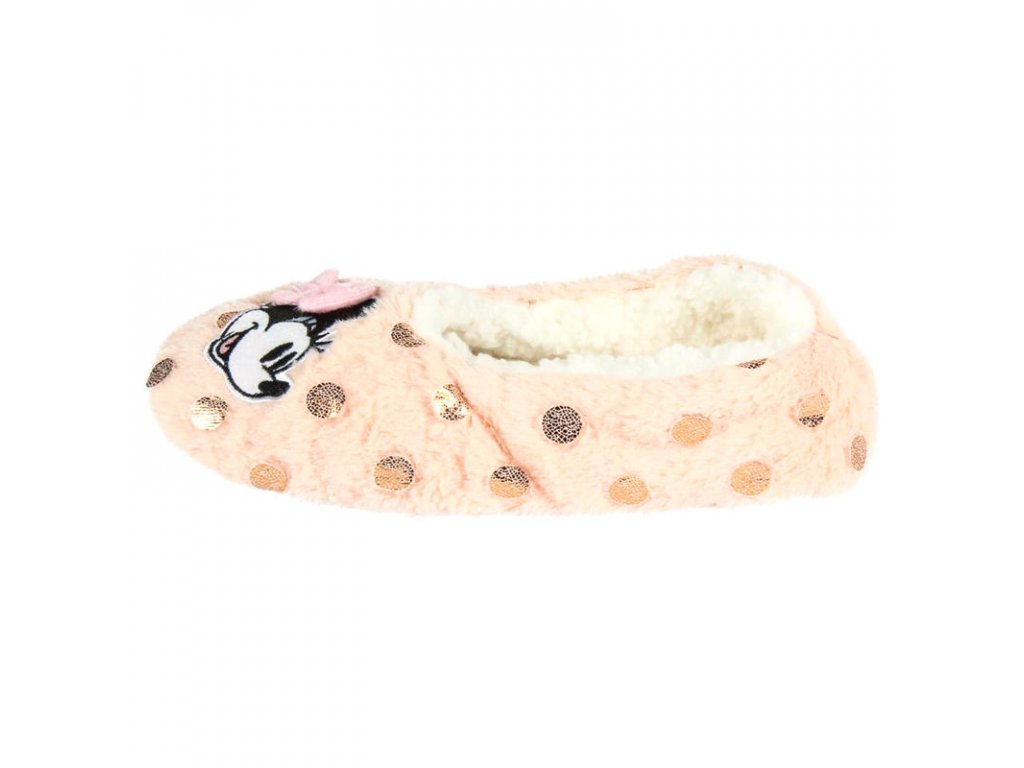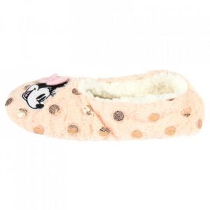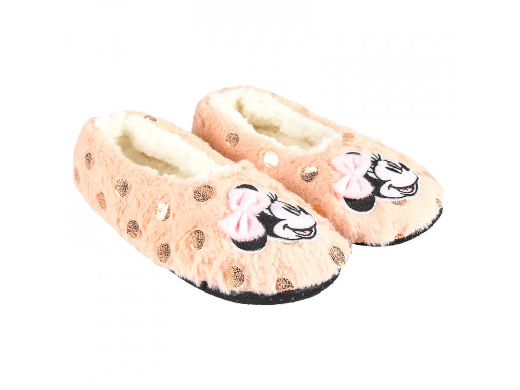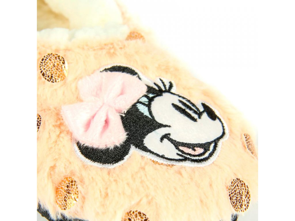Teplé papuče v bledo ružovej farbe s motívom Minnie od Disney. Papuče majú spevnenú spodnú časť.