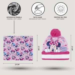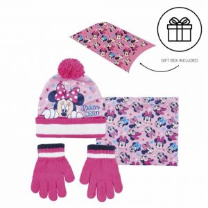 Perfektný set čiapky, nákrčníku a rukavíc s motívom Minnie. Súčastou balenia je aj darčeková krabička.