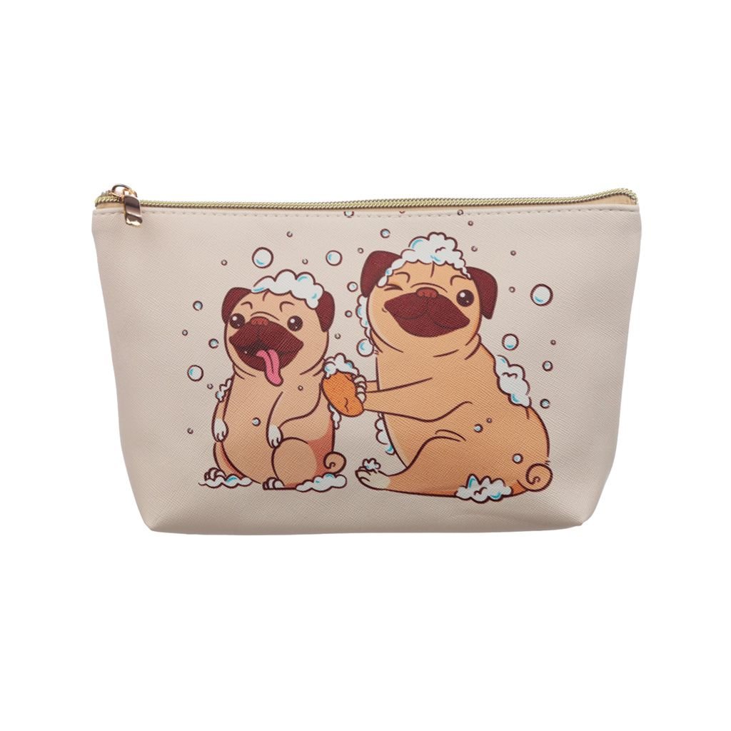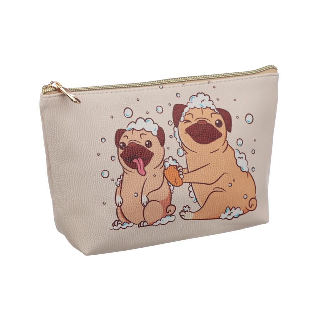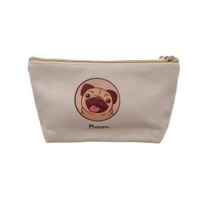 Praktická kozmetická taška s motívom psíka Mopsa. Zapínanie je na zips.
