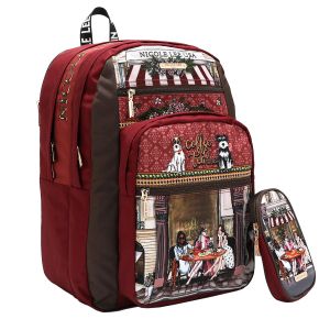 Perfektný maxi batoh s puzdrom americkej značky NICOLE LEE s motívom kolekcie SISTERS SECRET. Na prednej strane je vrecko na drobnosti. V hlavnej priehradke je vrecko na notebook, vrecko na doklady. Batoh viete pripevniť aj na rúčku kufra pre pohodlnejšie cestovanie. Na bočných stranách sú otvorené vrecká na fľašu a iné drobnosti.