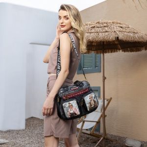 Kabelka americkej značky NICOLE LEE s motívom kolekcie LADIES NIGHT OUT. Kabelka sa uzatvára na zips, vo vnútri má otvorené vrecko na mobil a kľúče. Taktiež vrecko na zips na uloženie dokladov. Kabelka má aj dlhý popruh ktorý je nastaviteľný podľa potreby.