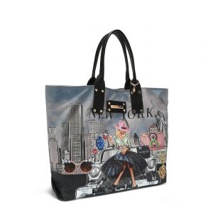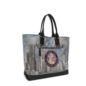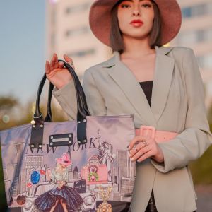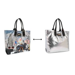 Perfektná obojstranná kabelka americkej značky Nicole Lee s motívom kolekcie SUCCESS IN NEW YORK. Kabelka má vo vnútri aj vonku vrecko na zips na doklady alebo iné drobnosti. Uzatváranie kabelky je na magnet. Kabelka je vo vnútri striebornej farby.