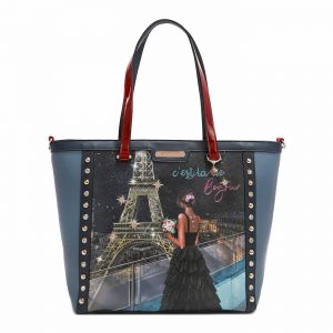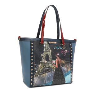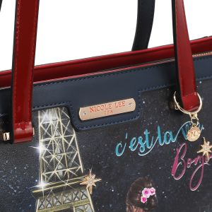 Štýlová kabelka na plece americkej značky Nicole Lee s motívom kolekcie TONIGHT FOR YOU. Kabelka sa uzatvára na zips. Na zadnej strane je vrecko na zips. Vo vnútri je otvorené vrecko na mobil a kľúče a taktiež vreco na zips na doklady. Kabelka má aj dlhý popruh ktorý je nastaviteľný podľa potreby.