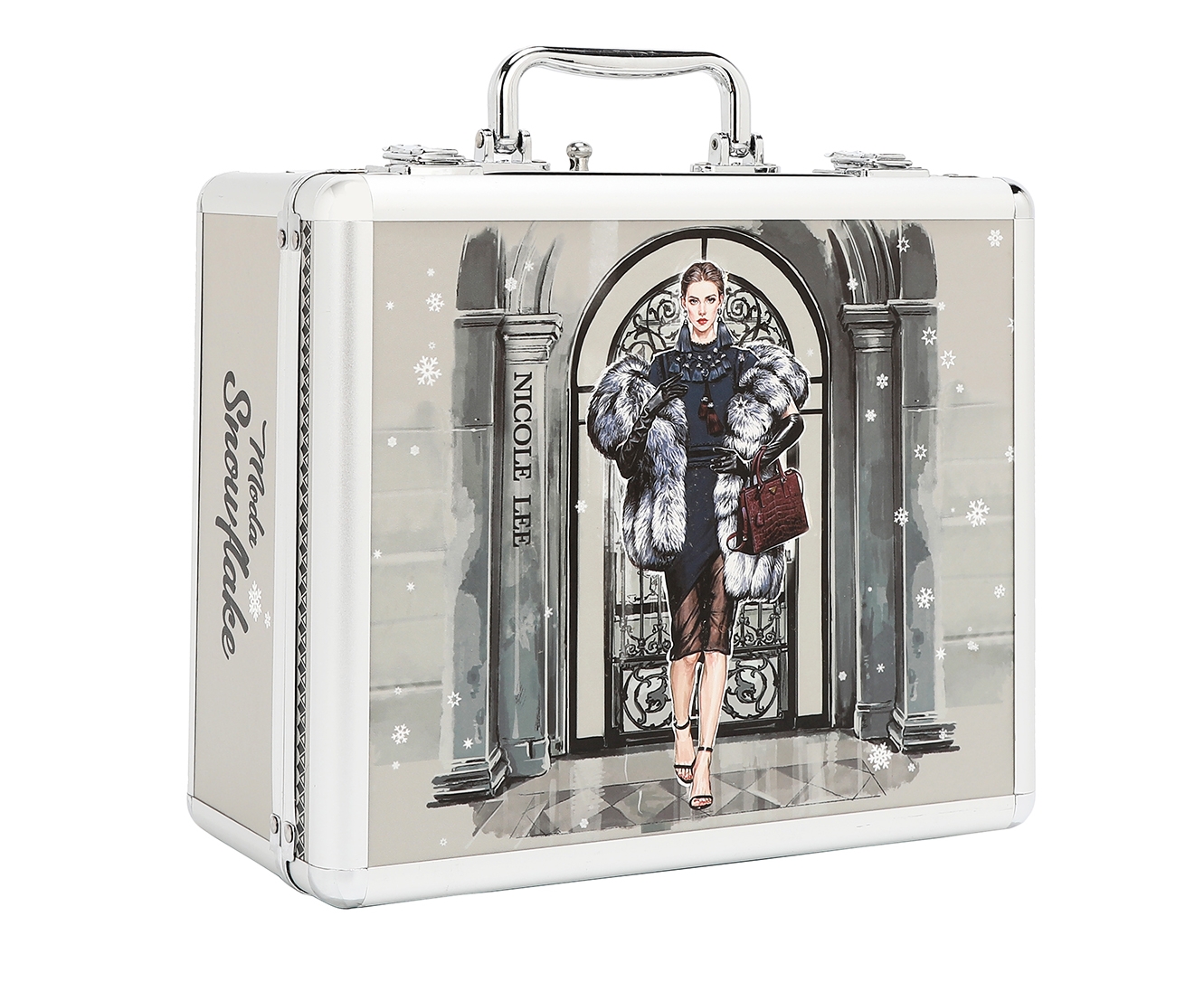 Praktický kozmetický kufrík americkej značky NICOLE LEE s motívom kolekcie MODA SNOWFLAKE.