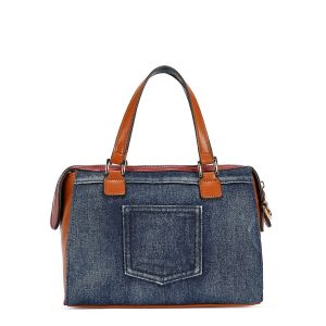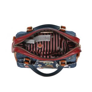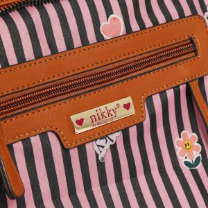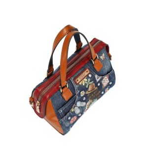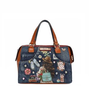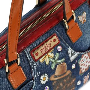 Štýlová rifľová kabelka do ruky americkej značky NIKKY by Nicole Lee s motívom kolekcie NIKKY WORLD. Kabelka má zapínanie na zips, vo vnútri je otvorené vrecko na mobil a taktiež vrecko na zips na uloženie dokladov. Kabelka má aj dlhý popruh ktorý je nastaviteľný podľa potreby.