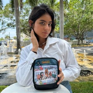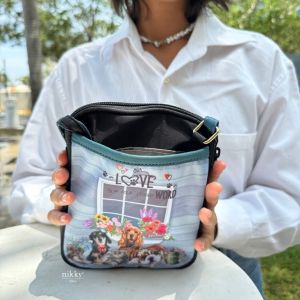 Praktická malá crossbody kabelka americkej značky NIKKY by Nicole Lee s motívom kolekcie ONE HAPPY FAMILY. Kabelka má uzatváranie na zips.Dlhý popruh je nastaviteľný podľa potreby.