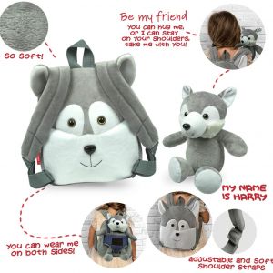 Skvelý detský batoh s plyšovým huskym Harrym značky Perletti.Popruhy batohu sú nastaviteľné podľa potreby. Batoh má jeden hlavý priestor ktorý sa uzatvára na zips.