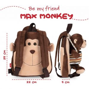 Skvelý detský batoh s plyšovou opicou Max značky Perletti.Popruhy batohu sú nastaviteľné podľa potreby. Batoh má jeden hlavý priestor ktorý sa uzatvára na zips.