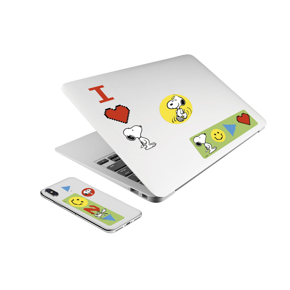Nálepky s motívom Snoopy. Nálepky sú vhodné aj na elektroniku, pri odlepovaní nezanechávajú lepkavú stopu.