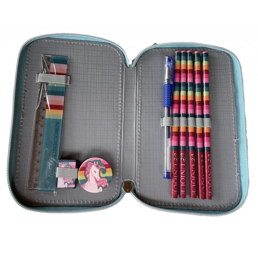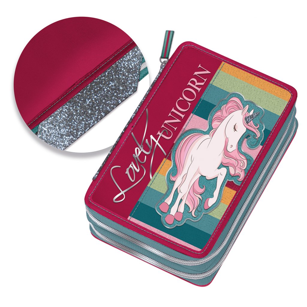 Perfektný 2 zipsový plný peračník s motívom Unicorn.