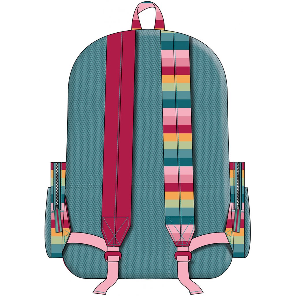 Po oboch stranách tašky sa nachádzajú bočné vrecká na fľašu s vodou alebo iné drobnosti. Hlavný priestor je rozdelený na tri časti. Menšie vrecko je vhodné na uloženie drobností. Do väčších častí sa zmestia potrebné učebnice a zošity. Vystužené ramenné popruhy sa dajú nastaviť podľa potreby. Zadná časť tašky má ergonomicky tvarovanú chrbtovú časť s mäkkým polstrovaním. Vhodná pre 1. - 3. ročník základnej školy.