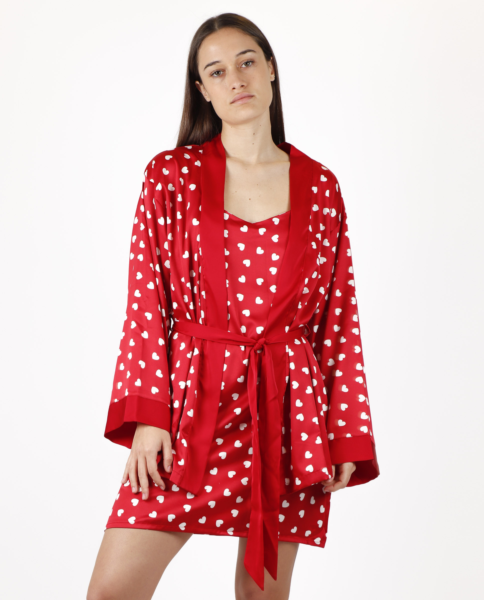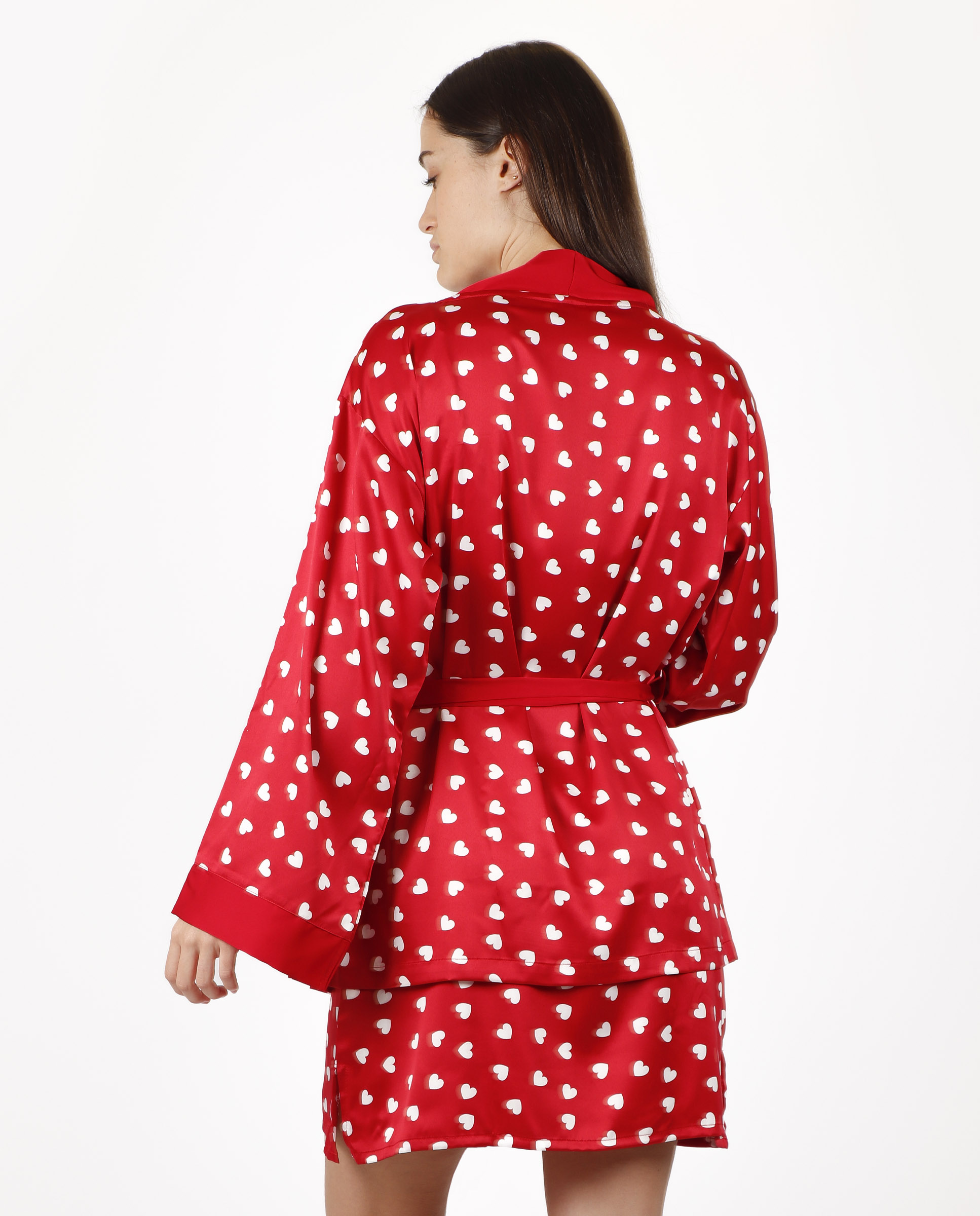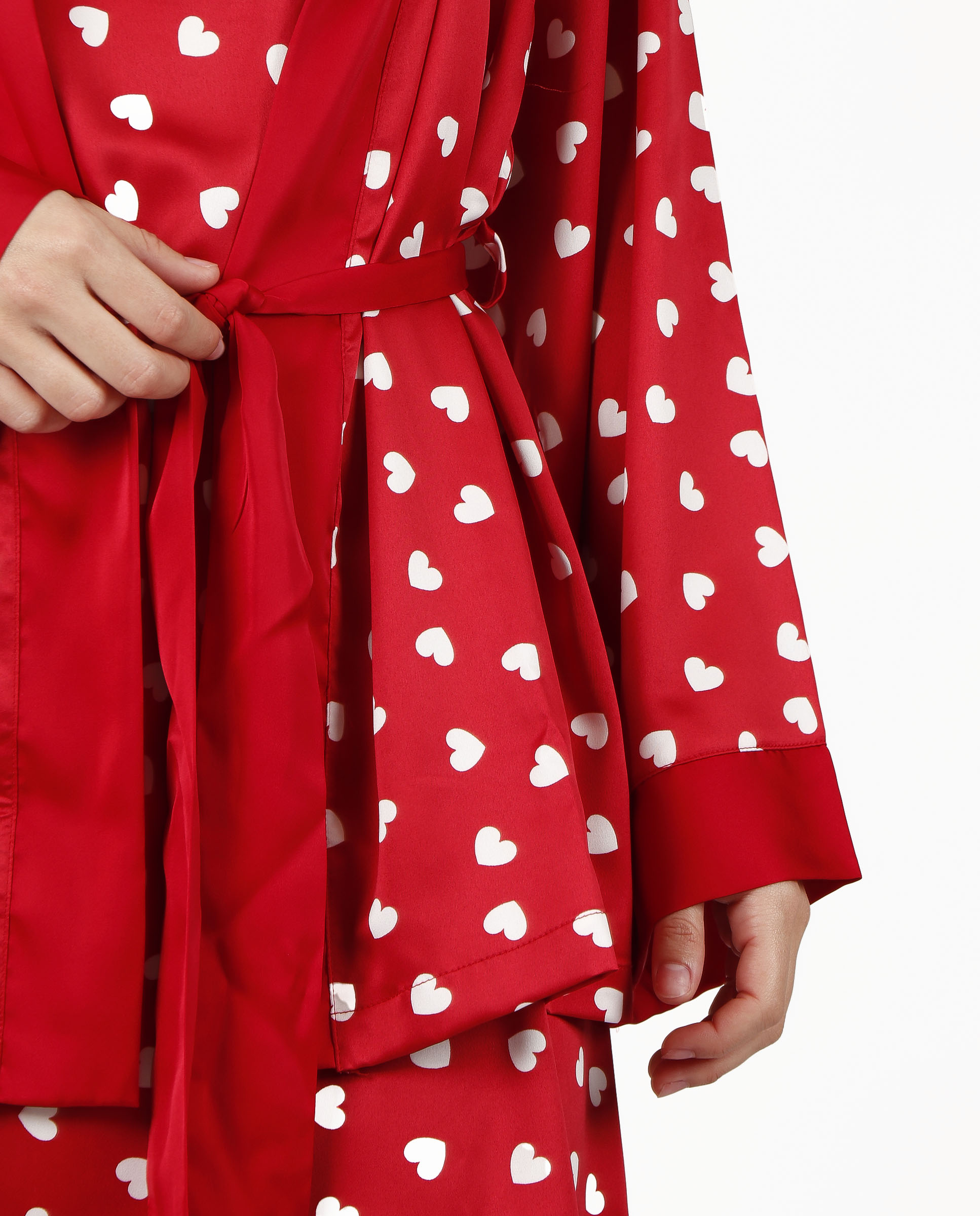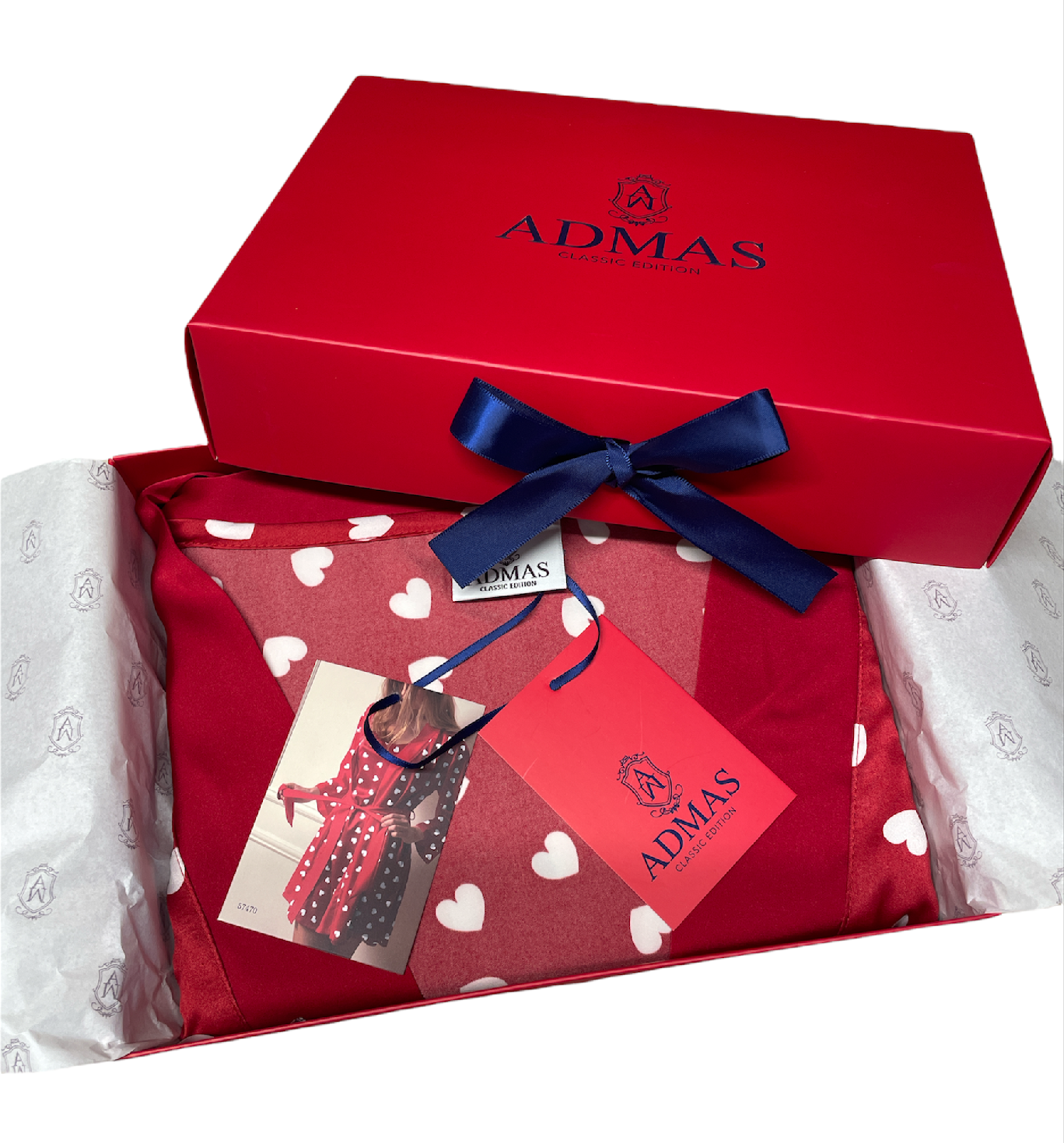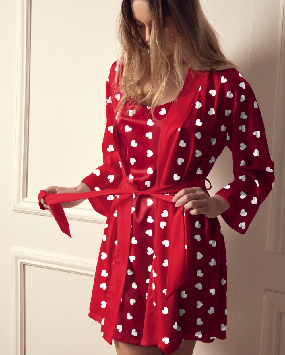 Dámsky saténový župan so srdiečkovou potlačou a motívom Valentine, z veľmi príjemného materiálu. Balené v darčekovej krabičke.
