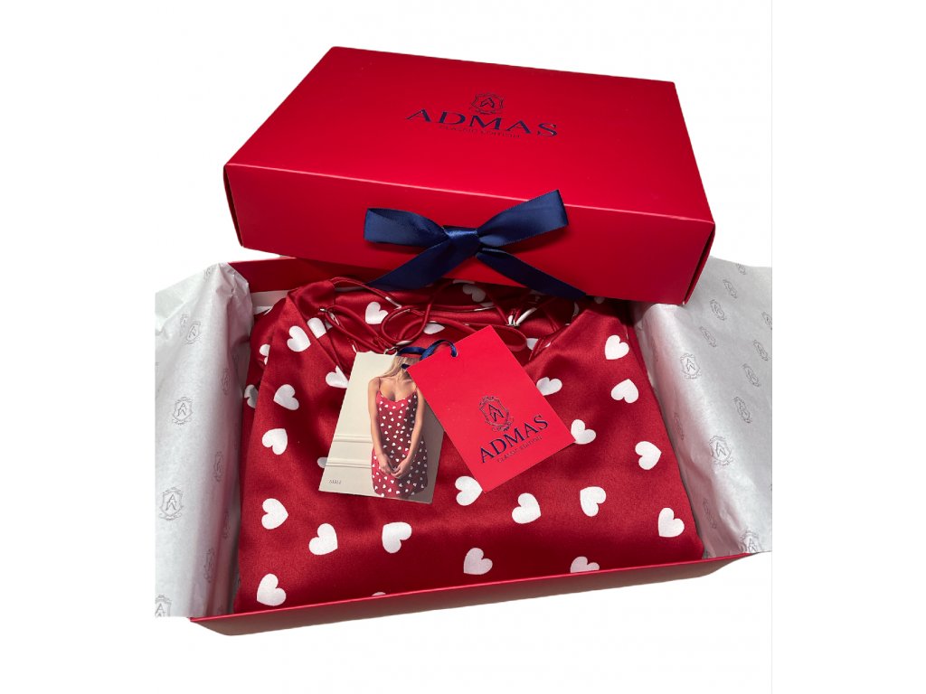 Dámska sexy saténová nočná košeľa Valentine v červenej farbe z veľmi príjemného materiálu. Ramienka sú nastaviteľné podľa potreby. Balené v darčekovej krabičke.