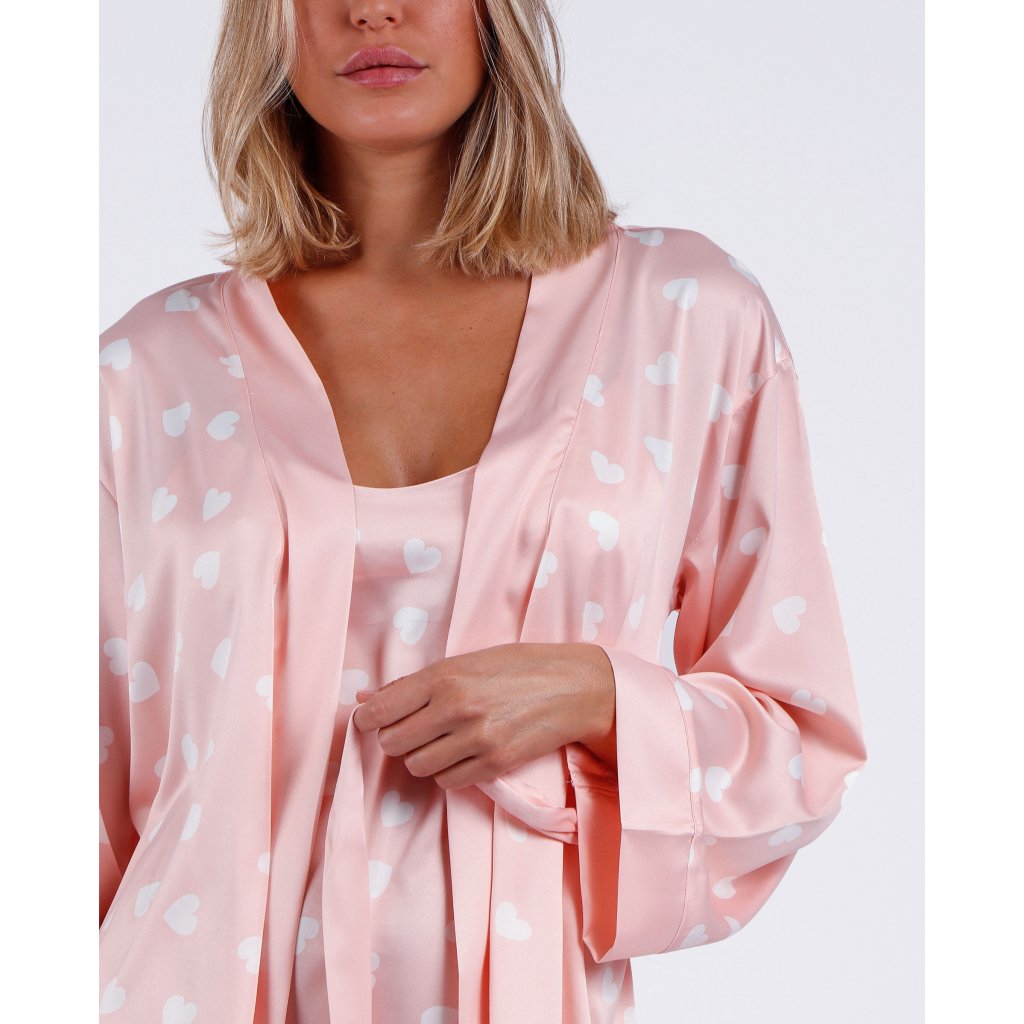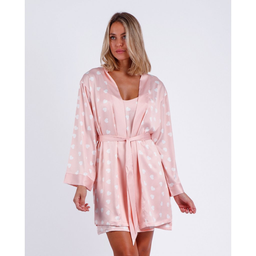 Dámsky saténový župan so srdiečkovou potlačou a motívom Valentine, z veľmi príjemného materiálu. Balené v darčekovej krabičke.