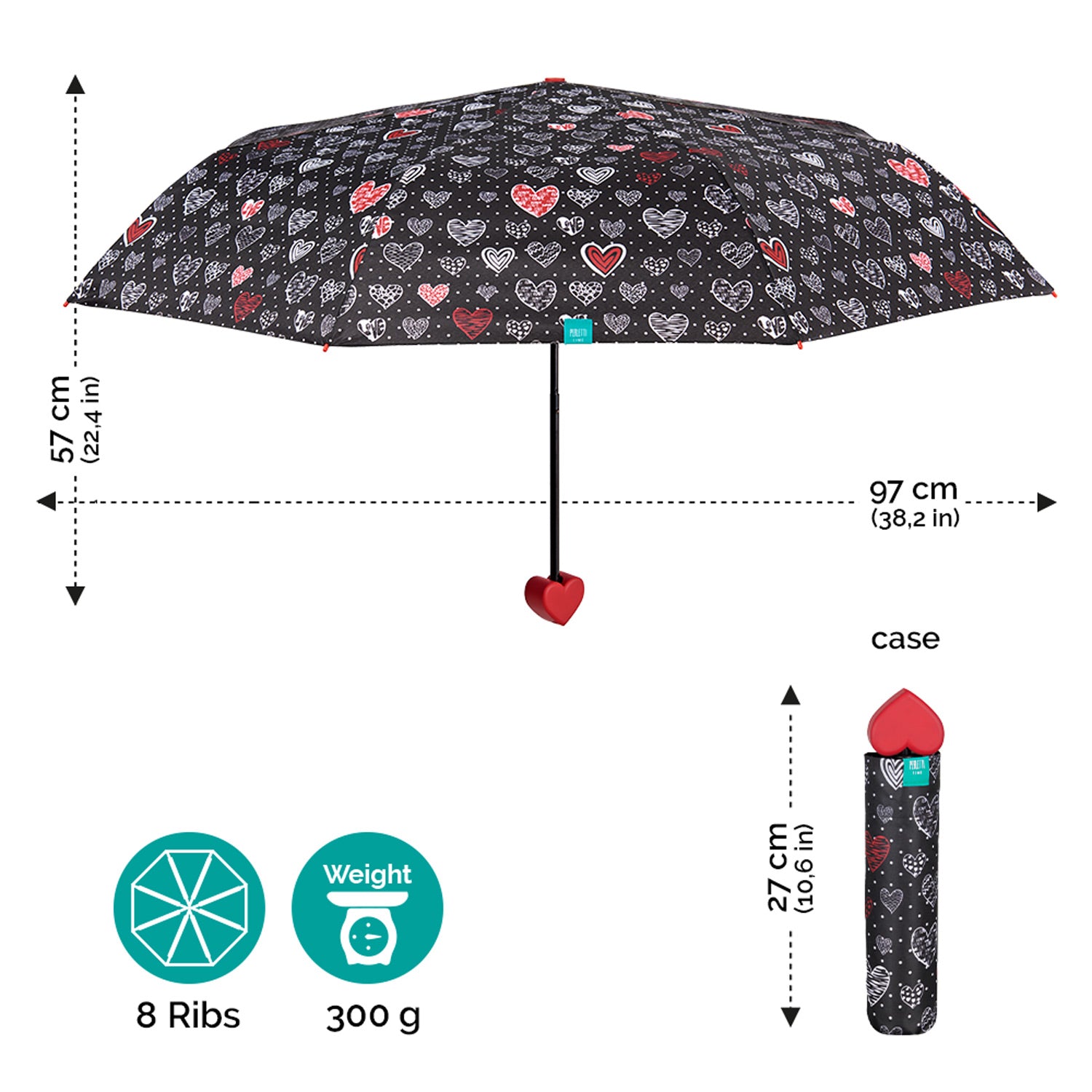 Jedinečný manuálny dáždnik Valentine značky Perletti.